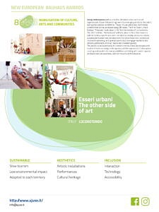 The New European Bauhaus is a creative and interdisciplinary initiative, convening a space of encounter to design future ways of living, situated at the crossroads between art, culture, social inclusion, science and technology’. Program’s background helps to understand the meaning of the prizes awarded, last September, at the end of a process started about a year ago. The numbers of entities and professionals involved are significant: over 2,000 projects presented in 10 different categories (each project could be nominated in 3 different sections) to build a framework of ‘good practices’ at continental level. Projects come from 27 different countries, with the Mediterranean ones (Italy and Spain) dominating as numbers.