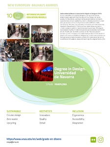 In 2016, the Universidad de Navarra launched a masters course in Design to train versatile and creative designers, through an innovative approach that focuses on how designcan serve society. All theoretical, practical and technical contents are applied to the projects; this allows students to learn through practice and to meet professionals in different fields. The integration of contents and skills helps students connect and understand the corpus of subjects, ideas and teachings.